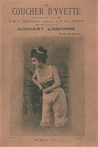 De mars à juin 1894, Blanche Cavelli s'illustre dans Le Coucher d'Yvette appelé aussi Le Coucher de la mariée, pantomime lyrique en un acte de Francisque Verdellet accompagnée d'une musique d'Eugène Arnaud.