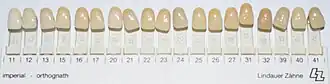 - ↑ Il ne s'agit pas à proprement parler d'un blanchiment mais d'un éclaircissement de la dentine par un agent de blanchiment qui joue sur la saturation.