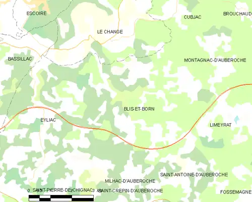 Sur plus de cinq kilomètres, le territoire communal est traversé au sud par l'autoroute A89 dont l'échangeur le plus proche, Périgueux-Est, se trouve à environ dix-sept kilomètres du bourg de Blis-et-Born, par la route.