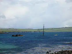 Restes de blockship coulés dans le Skerry Sound, dans les îles Orcades. Ce passage est maintenant complètement barré par la Churchill Barrier no 2.