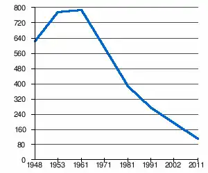 | 624 | 778 | 787 | 591 | 388 | 276 | 195[2] | 111[1] |