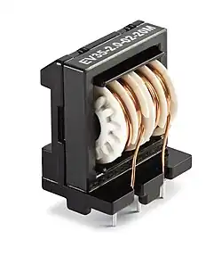 Une inductance à noyau de ferrite avec deux enroulements de 20 mH.