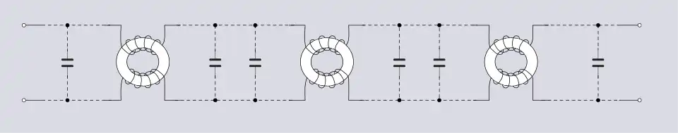 Une règle empirique plus conviviale pour les ingénieurs est que l'exigence approximative pour l'espacement des bobines de charge est de dix bobines par longueur d'onde de la fréquence maximale transmise[2]. Cette approximation peut être obtenue en traitant la ligne chargée comme un filtre à k constant (en) et en lui appliquant la théorie du filtre image (en). D'après la théorie de base des filtres à image, la fréquence angulaire de coupure et l'impédance caractéristique d'un filtre passe-bas à k constant sont données par :