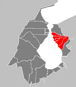 Le district de Bolívar regroupait les actuelles municipalités de Santa Rita, Cabimas, Simón Bolívar, Lagunillas et Valmore Rodríguez sur la rive orientale du lac de Maracaibo.