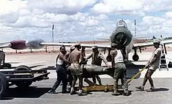 Une bombe aérienne non guidée Mk 82.Exemple d'engin explosif improvisé: une bombe tuyau.Chargement d'une bombe aérienne classique pour un F-84portugais durant la guerre d'indépendance de l'Angola.Bombe Grand Slam de 10 tonnes de la Seconde Guerre mondiale.Nombreuses bombes mise en scène au musée militaire de Dresden
