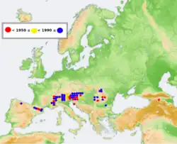 - ↑ Westrich P., Frommer U., Mandery K., Riemann H., Ruhnke H., Saure C. and Voith J. 2008. Rote Liste der Bienen Deutschlands (Hymenoptera, Apidae) — (4. Fassung, Dezember 2007). Eucera 3: 33—87.