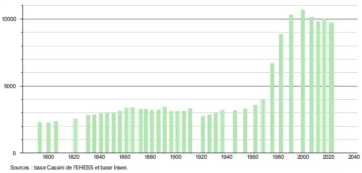 - ↑ Population municipale de référence en vigueur au 1er janvier 2025, millésimée 2022, définie dans les limites territoriales en vigueur au 1er janvier 2024, date de référence statistique : 1er janvier 2022.