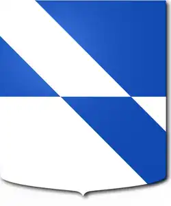 écu coupé d'azur et d'argent avec une bande de l'un en l'autre