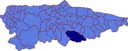 Situation de la commune d'Aller parmi les Asturies.