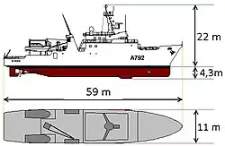 Équipage 4 officiers dont 1 ingénieur, 19 officiers mariniers, 13 quartiers-maîtres et matelots, 9 hydrographes
