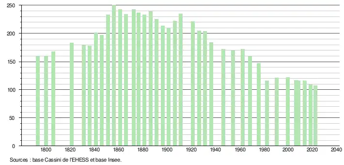 - ↑ Fiches Insee - Populations de référence de la commune pour les années 2006, 2007, 2008, 2009, 2010, 2011, 2012, 2013, 2014, 2015, 2016, 2017, 2018, 2019, 2020, 2021 et 2022.
