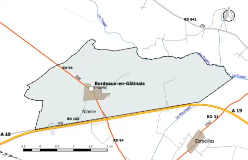 - ↑ « Carte du réseau routier de la commune de Bordeaux-en-Gâtinais », sur viamichelin.fr (consulté le ).
