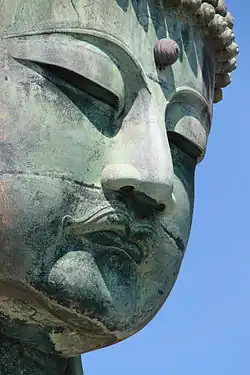 Visage de la statue du Grand Bouddha de Kamakura (Japon).