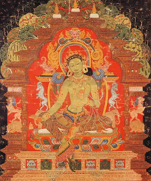 Dans le bouddhisme vajrayana (véhicule de diamant), le but est de devenir un bodhisattva qui signifie « être promis à l'Éveil ». Ayant atteint l'éveil, le bodhisattva n'entre pas en nirvāna mais reste dans le samsara, afin d'aider tous les êtres à se libérer de la souffrance. C'est une démarche de libération collective, au contraire du hīnayāna où l'on recherche la libération pour soi-même principalement.