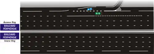 Le Boulevard périphérique de Paris est constitué de deux chaussées séparées et concentriques. Le périphérique intérieur est la chaussée la plus proche du centre de Paris où, du fait de la circulation à droite, les véhicules contournent Paris dans le sens horaire. À l'inverse, le périphérique extérieur est la chaussée la plus éloignée du centre de Paris, donc la plus proche de la banlieue parisienne et la circulation s'y effectue dans le sens antihoraire.