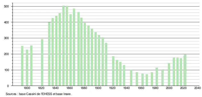 - ↑ Fiches Insee - Populations de référence de la commune pour les années 2006, 2007, 2008, 2009, 2010, 2011, 2012, 2013, 2014, 2015, 2016, 2017, 2018, 2019, 2020, 2021 et 2022.