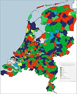 Couleur politique des bourgmestres aux Pays-Bas, au .
