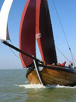Le spinnaker asymétrique d'un skiff frappé sur le bout-dehors[1]