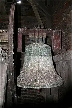 Connectée à l'antenne de Francfort la cloche annonce l'heure et la demi-heure avec grande exactitude.