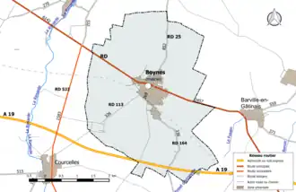 Au , Boynes est catégorisée commune rurale à habitat dispersé, selon la nouvelle grille communale de densité à sept niveaux définie par l'Insee en 2022[23]. Elle est située hors unité urbaine[24]. Par ailleurs la commune fait partie de l'aire d'attraction de Pithiviers, dont elle est une commune de la couronne[Note 2],[24]. Cette aire, qui regroupe 27 communes, est catégorisée dans les aires de moins de 50 000 habitants[25],[26].