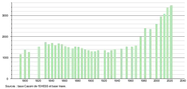 - ↑ Fiches Insee - Populations de référence de la commune pour les années 2006, 2007, 2008, 2009, 2010, 2011, 2012, 2013, 2014, 2015, 2016, 2017, 2018, 2019, 2020, 2021 et 2022.