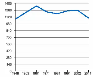 - 1 2 (sr + en) « Livre 20 : Vue d'ensemble comparative de la population en 1948, 1953, 1961, 1971, 1981, 1991, 2002 et 2011, données par localités) » [PDF], pages du recensement de 2011 en Serbie - Institut de statistique de la république de Serbie, (consulté le )