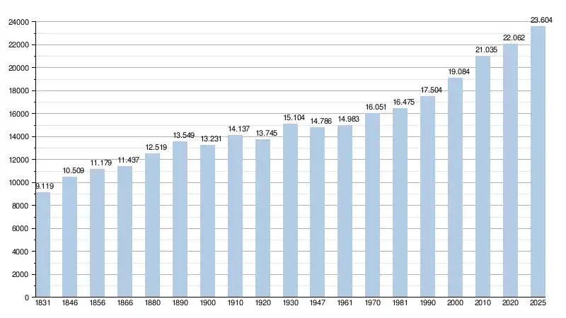 - Source : DGS, de 1831 à 1981 = recensements population ; à partir de 1990 = nombre d'habitants chaque [5].