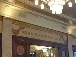 Les banquettes de moleskine rouge et les tables ont remplacé, en 1890, les chaises en paille et les longues tables en noyer. Un fronton à l’effigie de Gambrinus est encadré par deux tonneaux de bière[5]. À la fin du XIXe siècle, la brasserie possède cinq billards et les murs sont peints d’un décor végétal avec des animaux comme le paon et le singe.