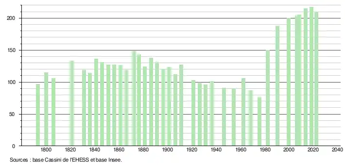 - ↑ Fiches Insee - Populations de référence de la commune pour les années 2006, 2007, 2008, 2009, 2010, 2011, 2012, 2013, 2014, 2015, 2016, 2017, 2018, 2019, 2020, 2021 et 2022.