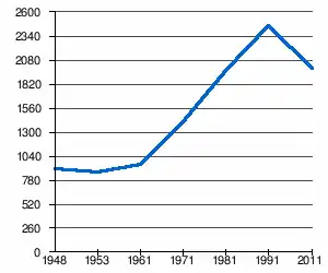 - 1 2 (sq) « Évolution de la population 1948-2011 », sur pop-stat.mashke.org (consulté le ).