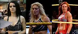 Team P.C.B. : de gauche à droite, Paige, Charlotte et Becky Lynch