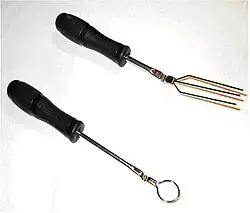 Il peut s'agir d'une broche à forme ronde ou à spirale ou d'une fourchette à 2, 3, 4 et même une douzaine de dents pour les grosses quantités.