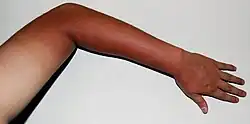 Le bronzage[1] est le phénomène de pigmentation par lequel la peau prend une couleur plus foncée en réaction à l'exposition à un rayonnement ultraviolet (UV) d'origine naturelle (comme le Soleil) ou artificielle (lampe à rayons ultraviolets). Cette réaction physiologique permet de renforcer la photoprotection cutanée.