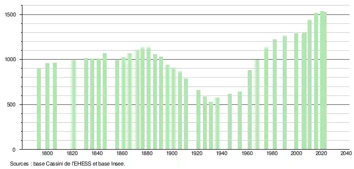 - ↑ Fiches Insee - Populations de référence de la commune pour les années 2006, 2007, 2008, 2009, 2010, 2011, 2012, 2013, 2014, 2015, 2016, 2017, 2018, 2019, 2020, 2021 et 2022.