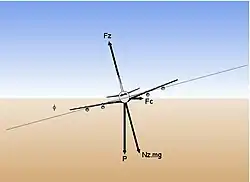 Soit l'angle d'inclinaison du planeur. Soit m la masse du planeur. Le poids du planeur est P = m × g. La « force » centrifuge C appliquée au planeur est :