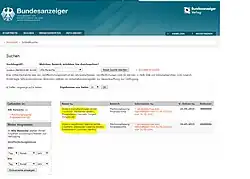 Jusqu'à l'introduction du Bundesanzeiger électronique (eBAnz), le bulletin était également la publication obligatoire des annonces judiciaires et autres, des inscriptions au registre du commerce ainsi que des publications obligatoires des comptes annuels et des avis de dépôt des entreprises.