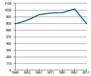 - 1 2 (sq) « Évolution de la population 1948-2011 », sur pop-stat.mashke.org (consulté le ).