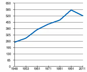 - 1 2 (sq) « Évolution de la population 1948-2011 », sur pop-stat.mashke.org (consulté le ).