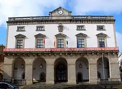 Centre de la cité ancienne, cette place allongée et biscornue multiplie les perspectives sur des façades ocre. Celle du palais de Mayoralgo a retrouvé, après restauration, ses élégantes fenêtres géminées. Le portail à bossages du palais épiscopal date du XVIe siècle. Les médaillons de part et d'autre de ce dernier représentent l'Ancien Monde (à gauche) et le nouveau (à droite).