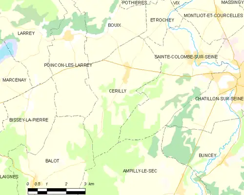- ↑ « Orthodromie entre Cérilly et Châtillon-sur-Seine », sur fr.distance.to (consulté le ).