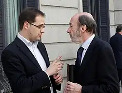César Luena échange en 2010 avec le ministre de l'Intérieur Alfredo Pérez Rubalcaba.