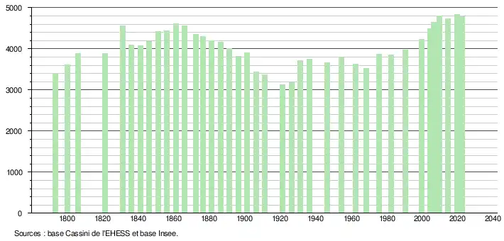 - ↑ Fiches Insee - Populations de référence de la commune pour les années 2006, 2007, 2008, 2009, 2010, 2011, 2012, 2013, 2014, 2015, 2016, 2017, 2018, 2019, 2020, 2021 et 2022.