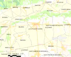 La Côte-Saint-André est limitrophe de sept autres communes de l'Isère (depuis le rattachement des communes de Nantoin et de Commelle à la commune nouvelle de Porte-des-Bonnevaux, au ) :