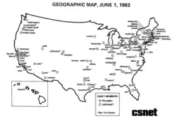 En 1981, trois sites étaient connectés : l'université du Delaware, celle de Princeton et Purdue. En 1982, 24 sites étaient connectés, et 84 en 1984 dont un en Israël. Rapidement, des connexions furent établies avec des départements informatiques en Australie, au Canada, en France, en Allemagne, en Corée et au Japon. CSNET a relié plus de 180 institutions[6].
