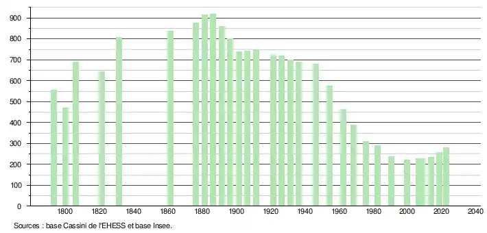 - ↑ Fiches Insee - Populations de référence de la commune pour les années 2006, 2007, 2008, 2009, 2010, 2011, 2012, 2013, 2014, 2015, 2016, 2017, 2018, 2019, 2020, 2021 et 2022.