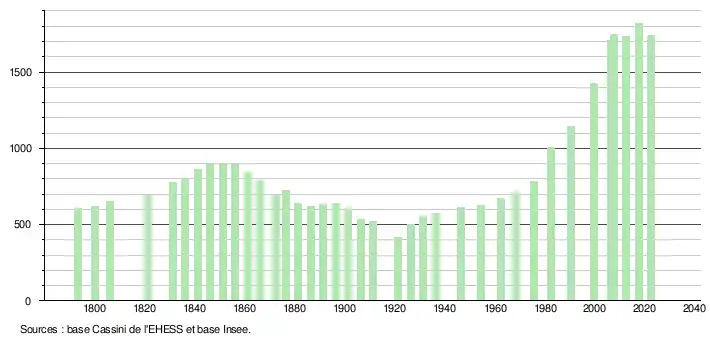 - ↑ Fiches Insee - Populations de référence de la commune pour les années 2006, 2007, 2008, 2009, 2010, 2011, 2012, 2013, 2014, 2015, 2016, 2017, 2018, 2019, 2020, 2021 et 2022.
