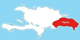 Le Caciquat du Hygüey[5] (Cacicazgo de Higüey) s'étendait sur tout le Sud-Est de l'île d'Hispaniola, limité au Nord par le Caciquat de Maguá et la Baie de Samaná, au Sud par la mer des Caraïbes, à l'Est par le Canal de la Mona, et à l'Ouest par les Caciquats de Maguana et Maguá. Ce caciquat ne couvrait que des territoires de l'actuelle République dominicaine.