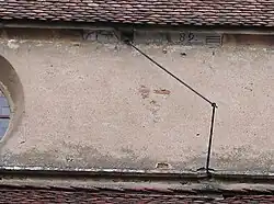 Sur la partie supérieure de la même façade de l’église on voit les vestiges d’un autre cadran solaire dont seul subsiste le style, jumeau de celui du «cadran des Récollets». Les inscriptions murales sont effacées, à l’exception d’un millésime inscrit en fronton : 1789.