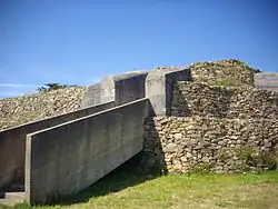 L'ensemble de la structure mesure 60 m de longueur sur 46 m de largeur et 6 m de hauteur[1], soit un volume de pierres estimé à 10 000 m3[5] sachant que de tout temps le site a ultérieurement servi de carrière improvisée[1]. Les deux cairns et les dolmens sont renfermés dans un double mur de parement. Le mur de parement interne atteint encore 5,60 m de hauteur mais la hauteur du mur de parement ne dépasse pas 1,50 m de hauteur. Des petits galets en quartz blanc ont été retrouvés disséminés de manière irrégulière entre les blocs de granite utilisés pour construire des murs de parement, leur présence pourrait correspondre à un dépôt rituel[2].