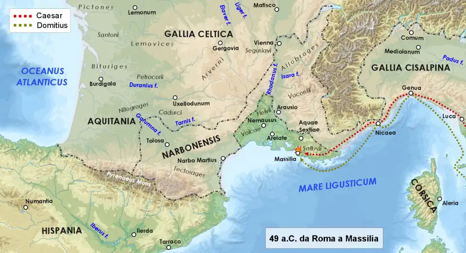 - ↑ Jules César, Guerres civiles, I, 36 et II, 1, 15.